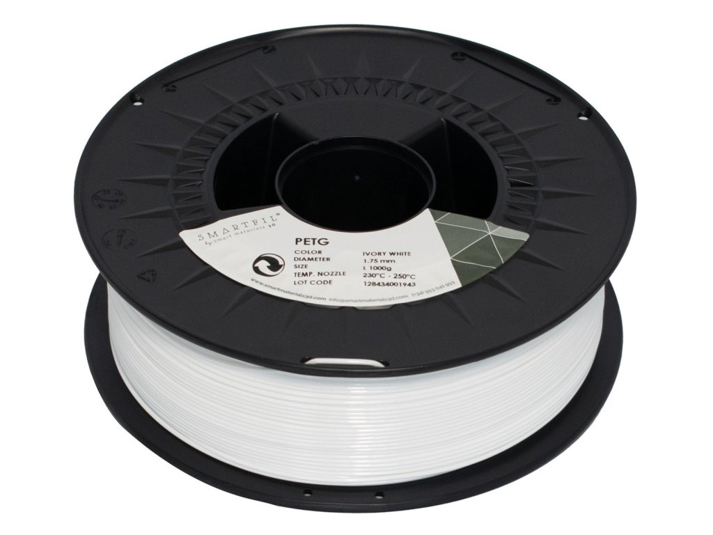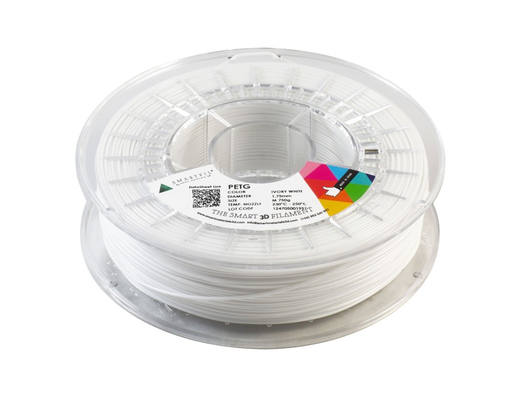 Tento bílý PET-G filament od firmy Smart Materials má nízkou smrštivost, což usnadňuje tisk. Je téměř průhledný a propouští tak umělé světlo. Jeho nejvýznamnějšími vlastnostmi jsou odolnost vůči velkému množství chemikálií a také vůči slunečnímu záření, proto jej lze použít v exteriéru.