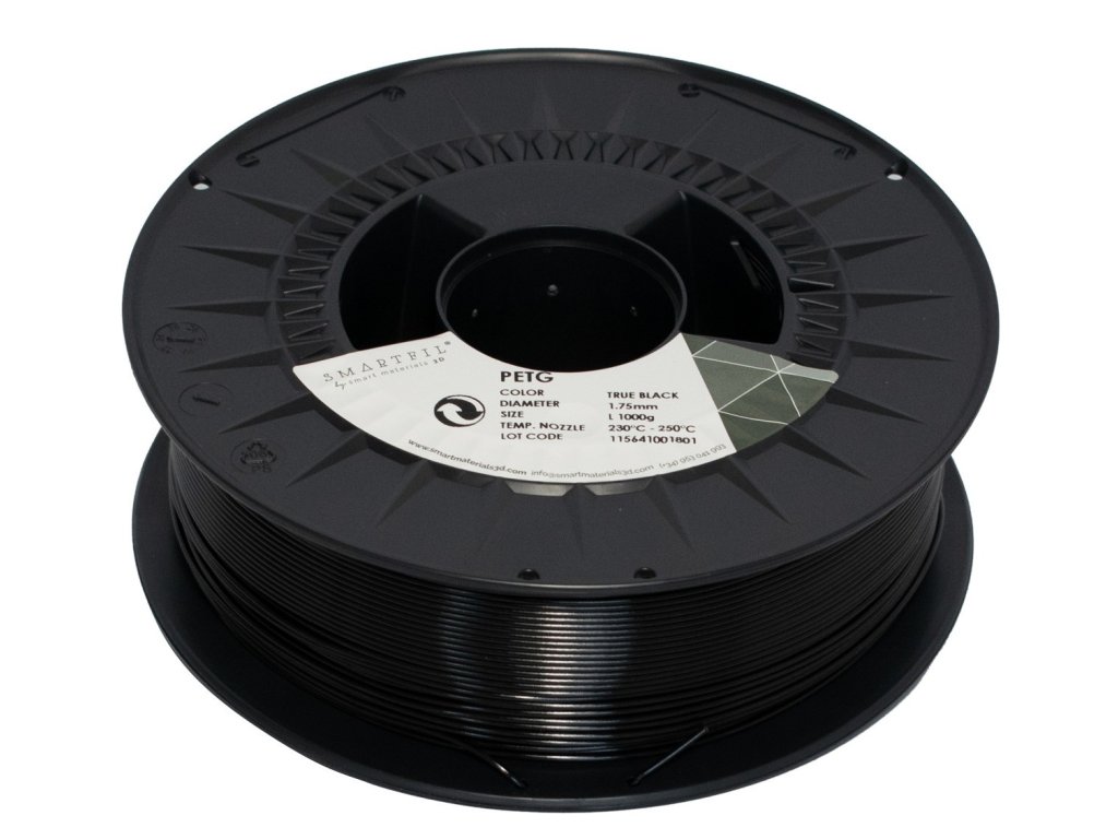 Tento černý PET-G filament od firmy Smart Materials má nízkou smrštivost, což usnadňuje tisk. Je téměř průhledný a propouští tak umělé světlo. Jeho nejvýznamnějšími vlastnostmi jsou odolnost vůči velkému množství chemikálií a také vůči slunečnímu záření, proto jej lze použít v exteriéru.