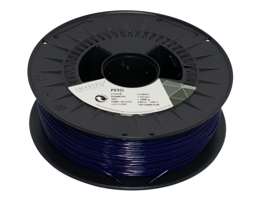 Tento tmavě modrý PET-G filament od firmy Smart Materials má nízkou smrštivost, což usnadňuje tisk. Je téměř průhledný a propouští tak umělé světlo. Jeho nejvýznamnějšími vlastnostmi jsou odolnost vůči velkému množství chemikálií a také vůči slunečnímu záření, proto jej lze použít v exteriéru.
