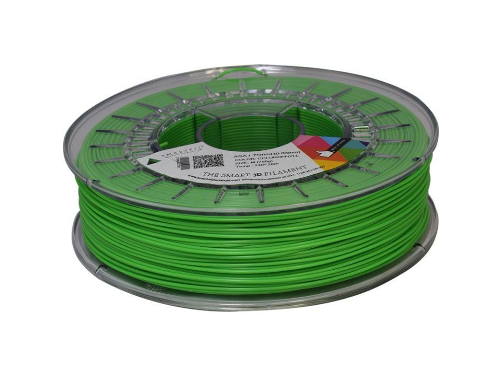 SMARTFIL ASA Chlorophyl je filament s výjimečnou odolností proti povětrnostním vlivům. Na rozdíl od mnoha jiných plastů si ASA zachovává svou barvu a odolnost proti nárazu i při dlouhodobém venkovním použití.