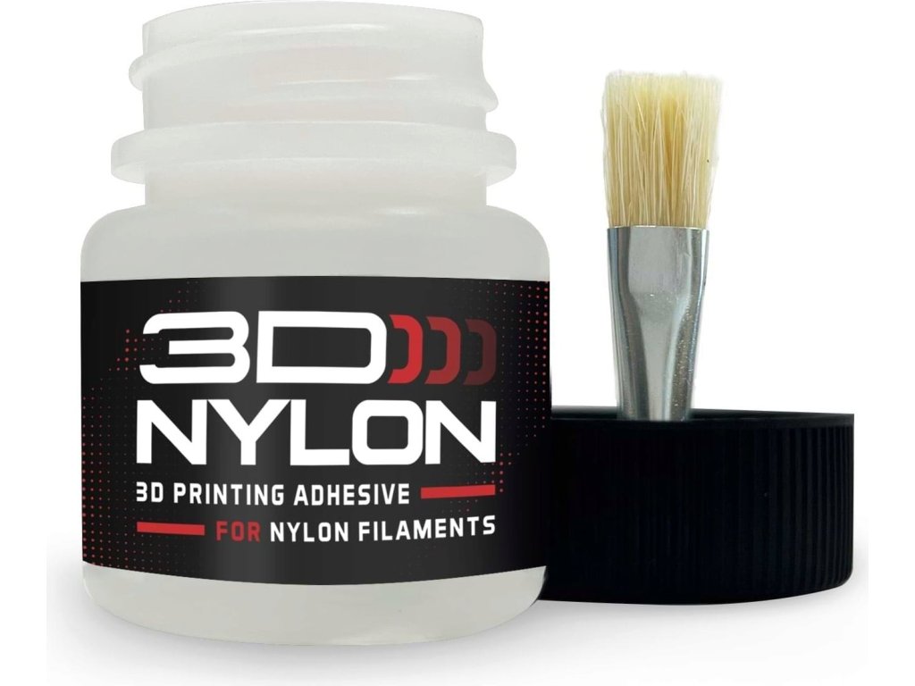 3DNYLON Adhesive je speciálně vyvinuté adhezivní lepidlo navržené pro náročné filamenty, jako je Nylon (PA), PA-CF, PA-GF a další technické materiály, které mají tendenci se při tisku kroutit. Poskytuje stabilní přilnavost i u velkých dílů a představuje účinnou, čistou a cenově dostupnou alternativu k běžným metodám, jako je kaptonová páska, lepidla nebo různé domácí směsi.