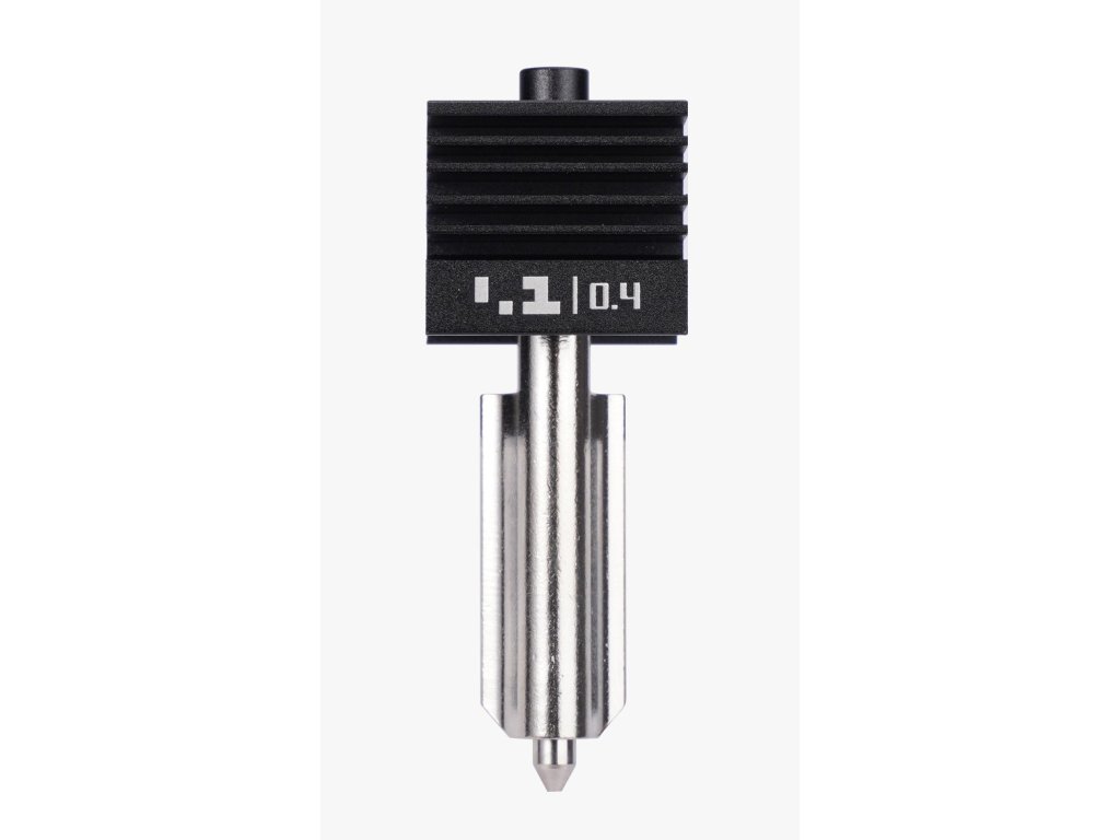 Originální hotend s tryskou z kalené oceli (hardened steel) o průměru 0,2 mm představuje ideální řešení pro každodenní tisk i pro tisk náročnějších materiálů. Tato originální all-in-one konstrukce obsahuje trysku, heatbreak, a heatsink v jednom.