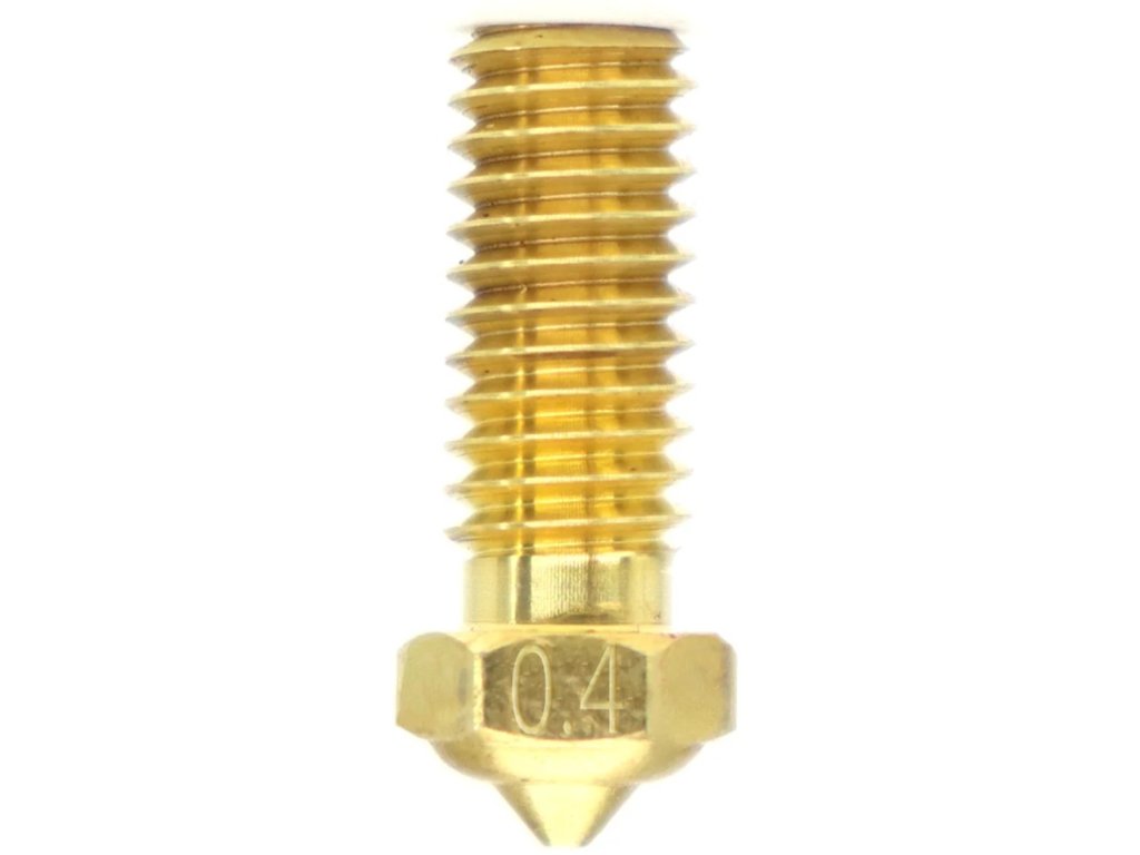 Kvalitní mosazná tryska 0,4 mm určená k tisku širokého spektra 1,75 mm širokých strun.