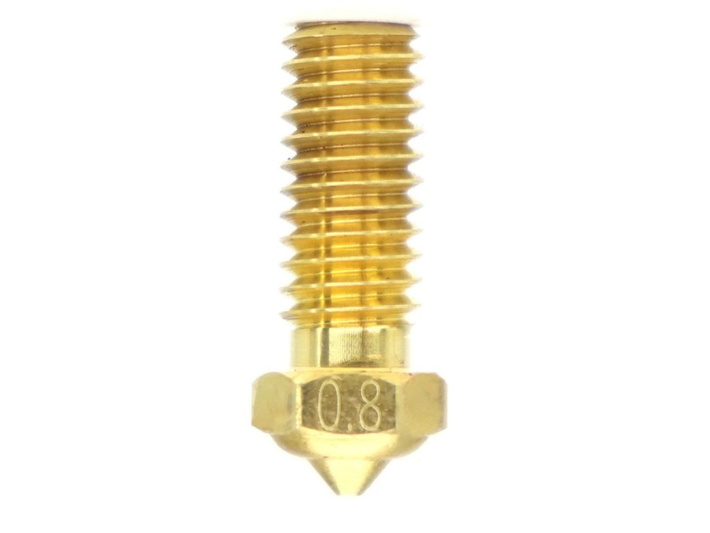 Kvalitní mosazná tryska se širokým průměrem 0,8 mm určená k tisku všech 1,75 mm širokých strun.
