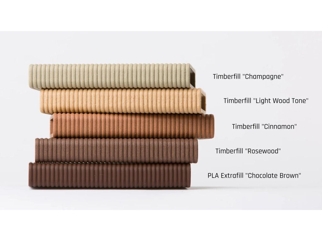 Fillamentum nabízí také 18 barev vysoce kvalitního ABS a 4 odstíny filamentu WOOD s dřevěným vzhledem, který je obohacen o reálné dřevěné piliny.