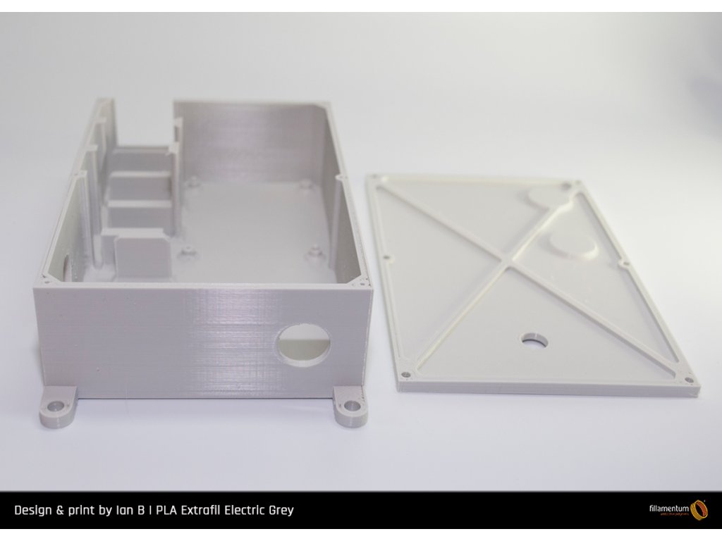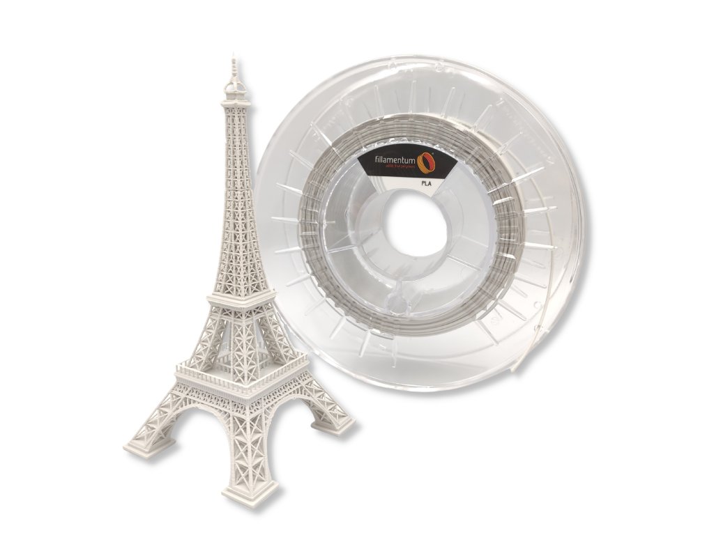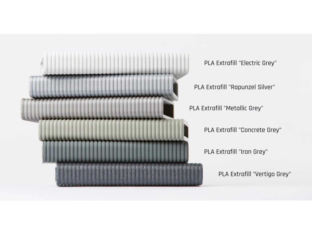 Světle šedý filament PLA Extrafill Electric Grey je materiál pro FFF (také známý jako FDM) technologie 3D tisku vyrobený v Česku značkou Fillamentum. Výhodou tohoto materiálu je snadné použití pro 3D tiskárny. Materiál umožňuje vysokou kvalitu tisku, i při náročných detailech.