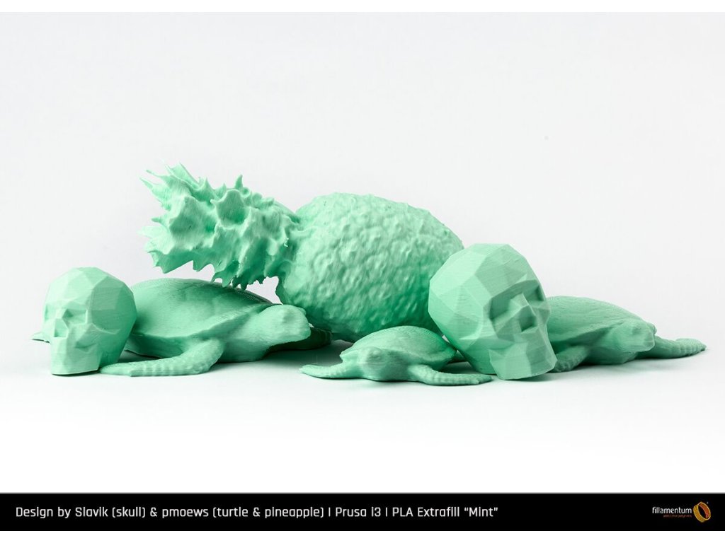 Pastelově zelený filament PLA Extrafill Mint je materiál pro FFF (také známý jako FDM) technologie 3D tisku vyrobený v Česku značkou Fillamentum. Výhodou tohoto materiálu je snadné použití pro 3D tiskárny. Materiál umožňuje vysokou kvalitu tisku, i při náročných detailech.