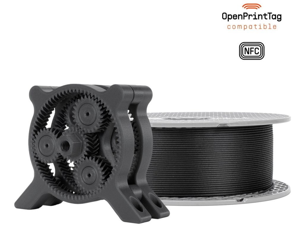 Součástí každé nové cívky je také přepisovatelný NFC čip využívající standard OpenPrintTag. Ten je navržen tak, aby byl plně otevřený, snadno rozšiřitelný a fungoval napříč různými značkami i zařízeními. Hlavním přínosem je jeho offline provoz – všechna důležitá data jsou uložená přímo v tagu, takže tiskárna cívku rozpozná okamžitě, bez nutnosti připojení k internetu nebo k uzavřenému ekosystému. Tag obsahuje klíčové informace o filamentu a lze jej načíst i prostřednictvím mobilní aplikace Prusa.