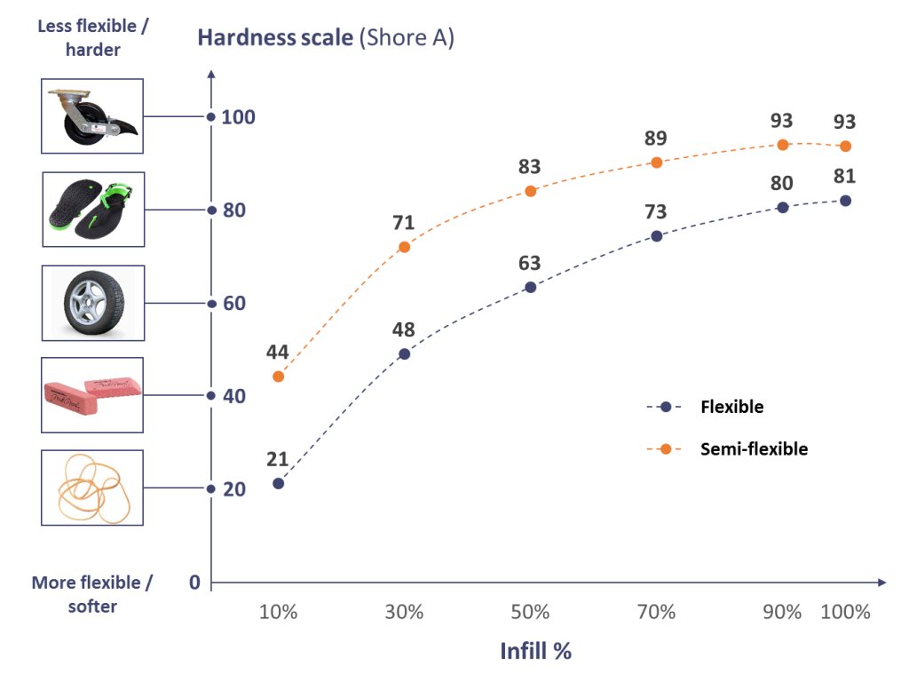Díky tvrdosti Shore 77A vyniká svou vysokou elasticitou, což umožňuje tisk součástí, které se musí ohýbat nebo natahovat, aniž by ztratily svůj původní tvar.